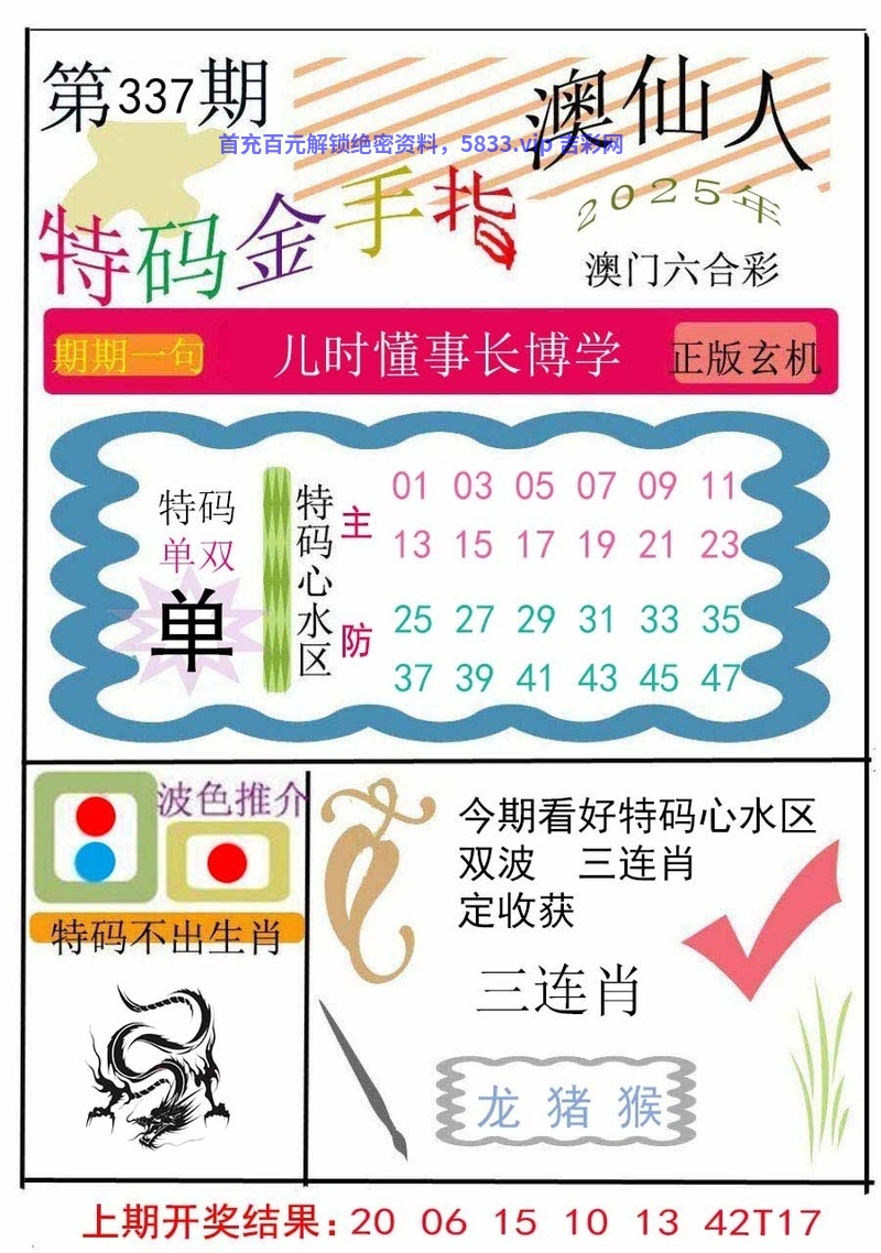 337期:单双中特(单单单)开:鸡09中
